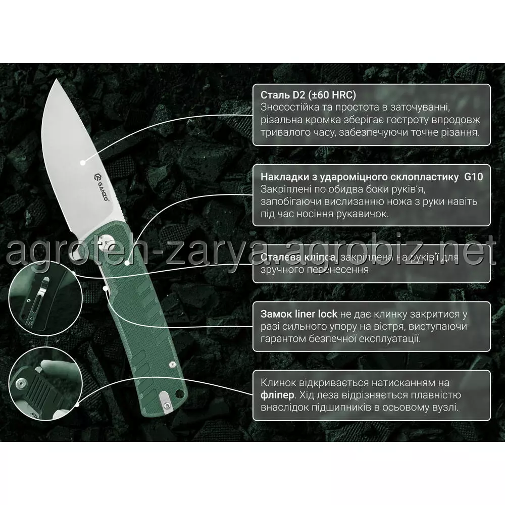 До головних переваг ножа Ganzo G769 належать якісна механіка та використання висококласних матеріалів: