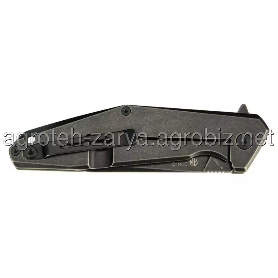 Складана конструкція ножа Ruike D191 має мінімалістичний дизайн, універсальний для комфортного використання інструмента як у міському середовищі, так і в польових умовах. Одна з переваг моделі — сталевий горизонтальний упорний кульковий підшипник у осьовому вузлі, що покращує плавність ходу леза. Крім того, ніж виготовлений зі зносостійких матеріалів, що витримують високі навантаження.
