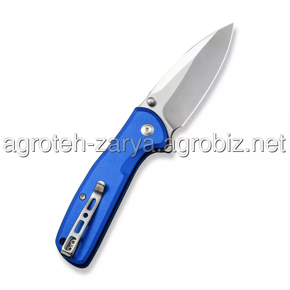 У конструкції передбачено двопозиційний затискач з нержавіючої сталі. Кліпса дозволяє повністю сховати ніж у кишені для непомітного носіння (EDC) у положенні Tip-Up.