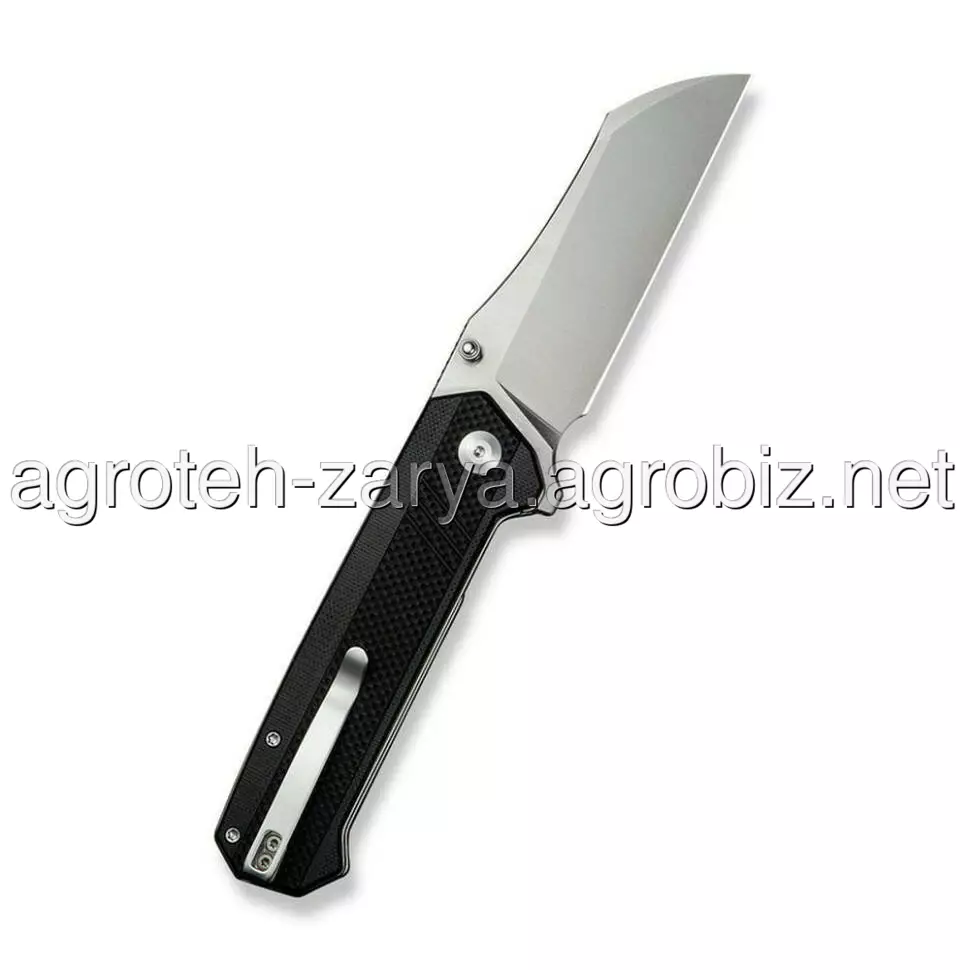 - Накладки G10 на руківʼї. Склопластик з шорсткою поверхнею не дає долоні ковзати по конструкції, підвищуючи безпеку експлуатації. До того ж G10 не боїться механічного впливу, не вбирає вологу та зберігає форму у разі перепадів температури.