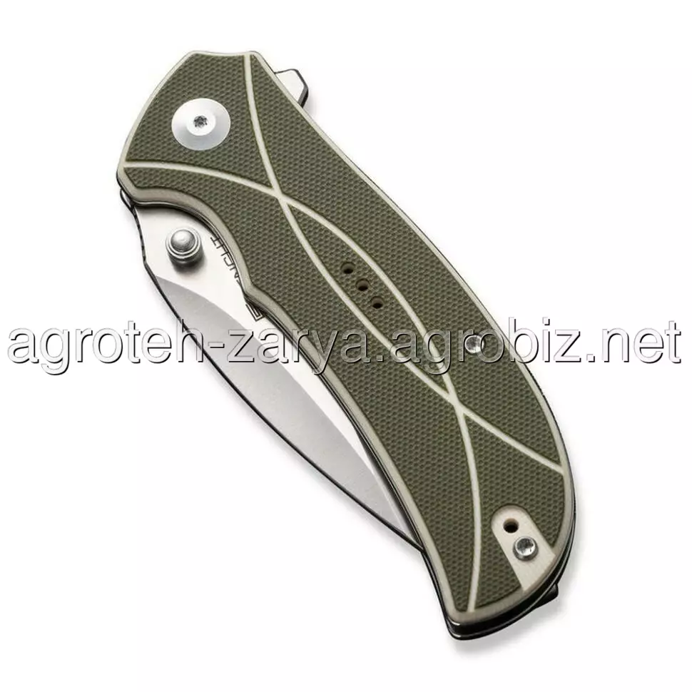 По обидва боки руківʼя закріплені рельєфні накладки зі склопластику G10, який відповідає за міцний хват. Матеріал не вбирає вологу та запахи, не тріскається при ударі та перепадах температури, тому інструмент можна використовувати за будь-яких умов, де потрібен надійний та довговічний помічник.