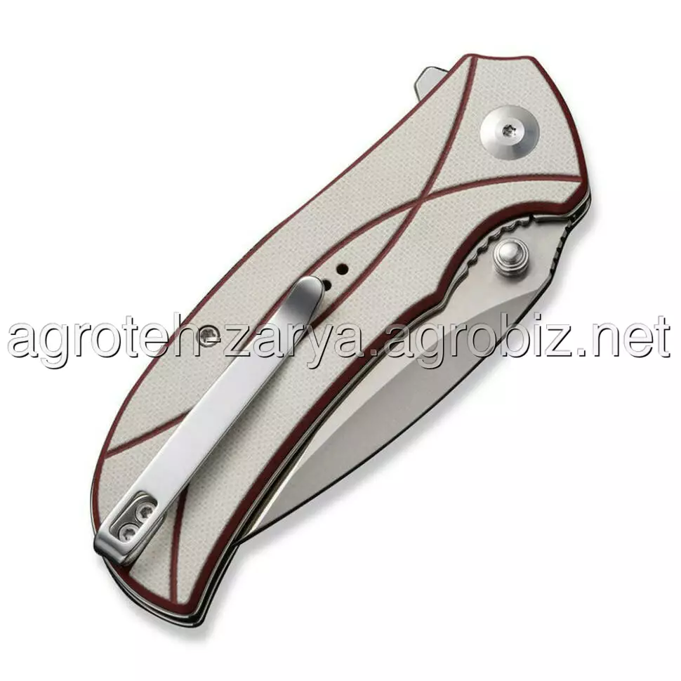 Кліпса виготовлена зі сталі та є двопозиційною: користувач може кріпити її з правого або лівого боку руківʼя, адаптуючи під індивідуальні уподобання.