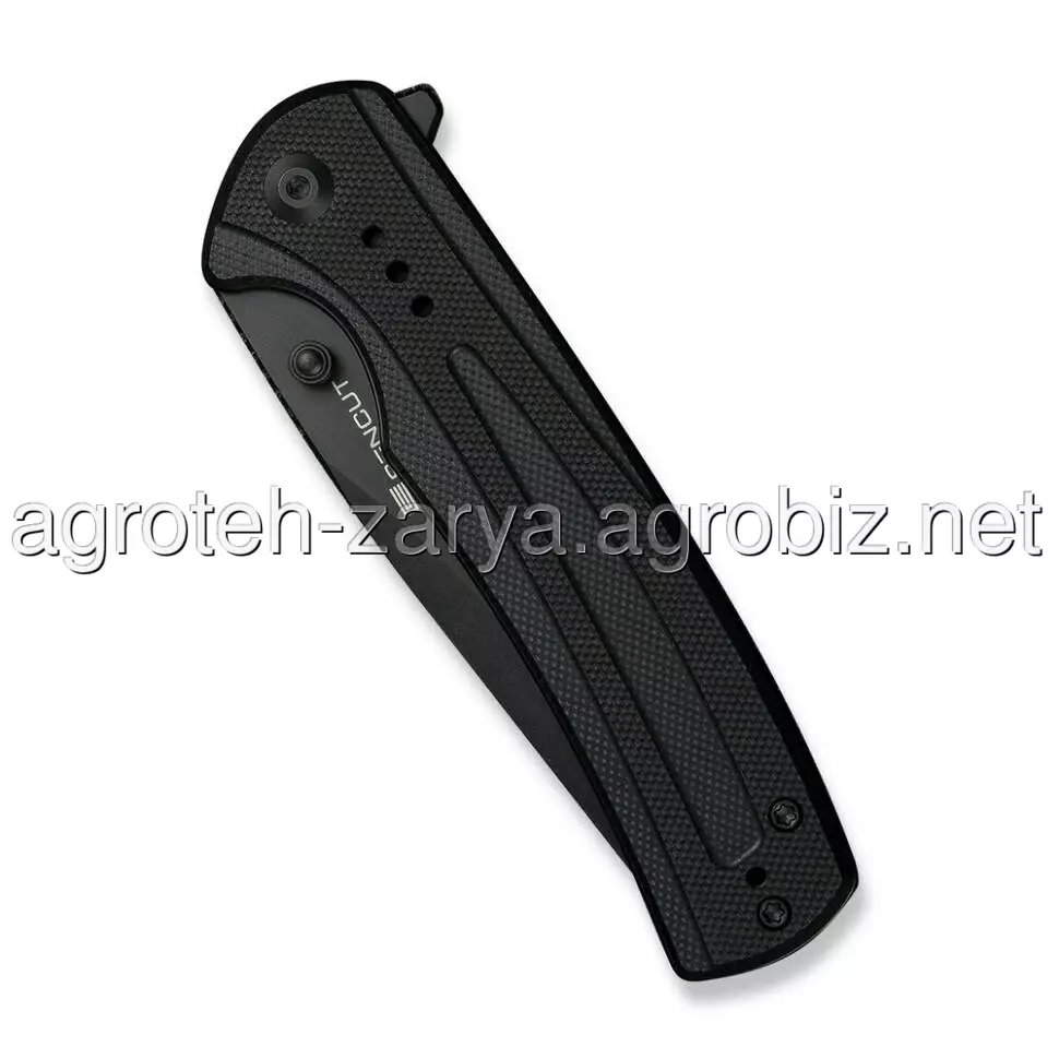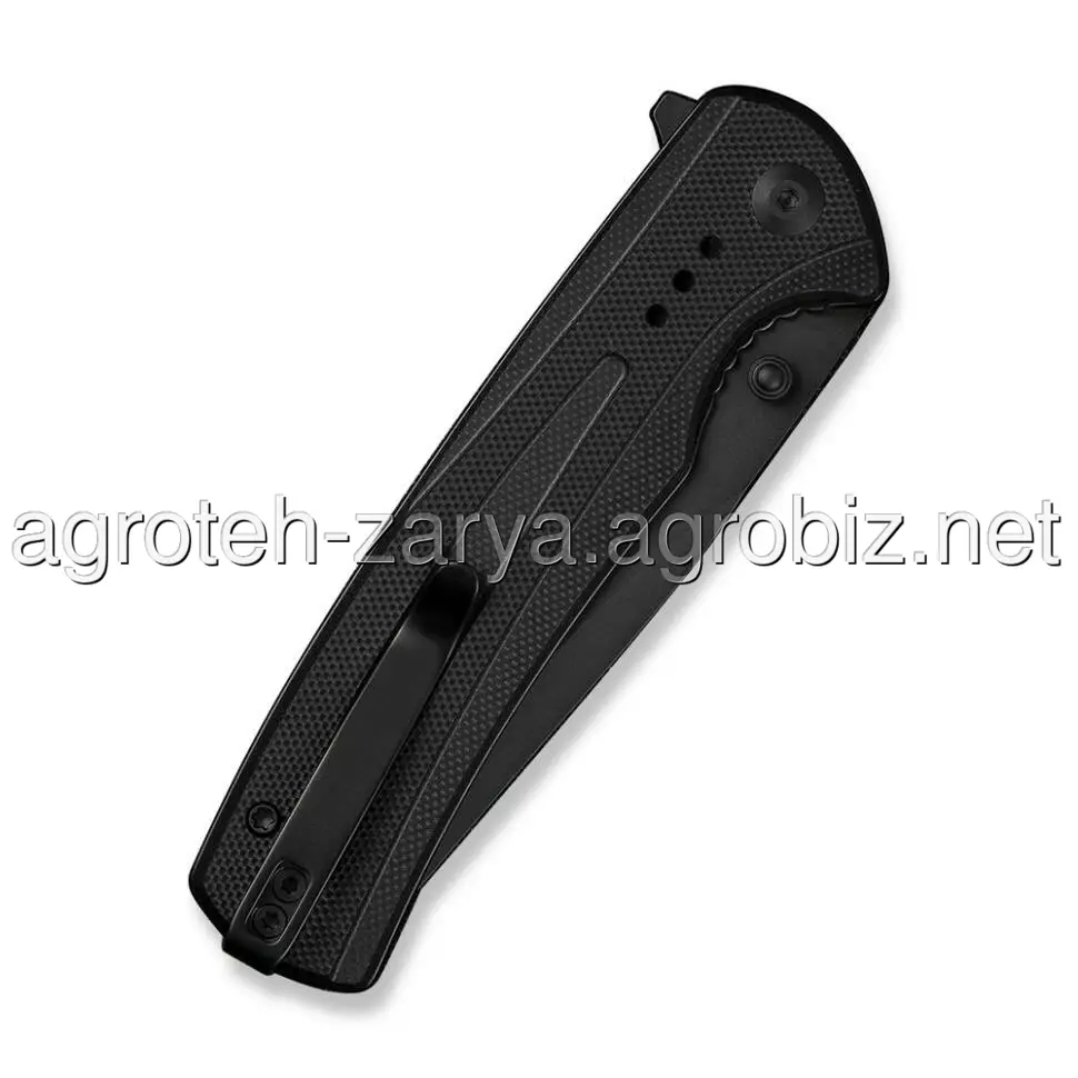 Хвостова частина доповнена двопозиційною кліпсою Tip-Up на двох гвинтах. Затискач передбачає непомітне носіння ножа у кишені.