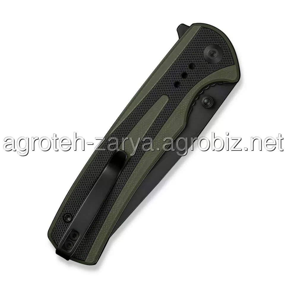 Хвостова частина доповнена двопозиційною кліпсою Tip-Up на двох гвинтах. Затискач передбачає непомітне носіння ножа у кишені.