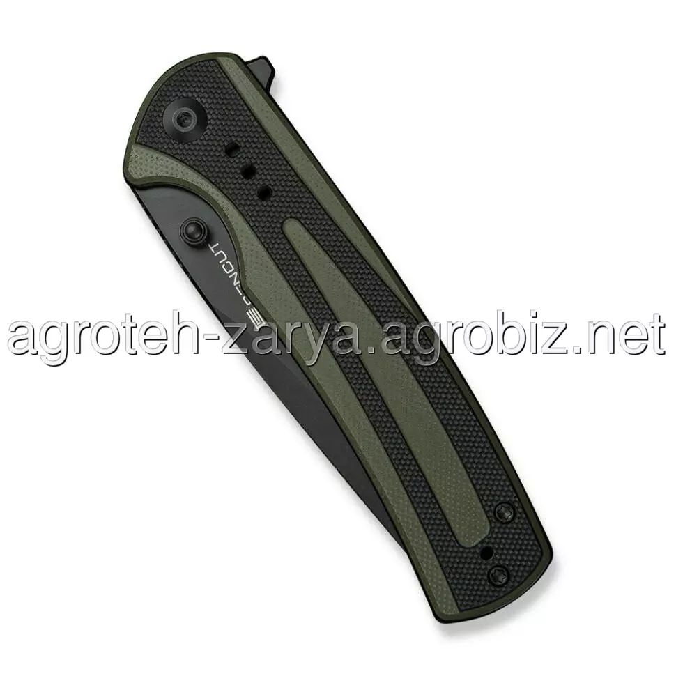 - Руківʼя з накладками G10. Склотекстоліт на епоксидній зв'язці несприйнятливий до впливу більшості побутових хімікатів, перепадів температури та вологи. Шорстка текстура відповідає за міцне утримання. Плавні вигини плашок і округлі фаски знижують тиск на долоню та не дають пальцям ковзати по конструкції.