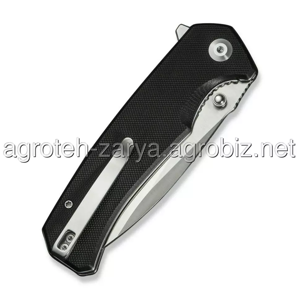 Ніж Sencut Skarnax оснащений сталевою кліпсою, адаптованою під різні стилі носіння і використання правшами та шульгами. Затискач є двопозиційним з можливістю кріплення з будь-якого боку руківʼя.