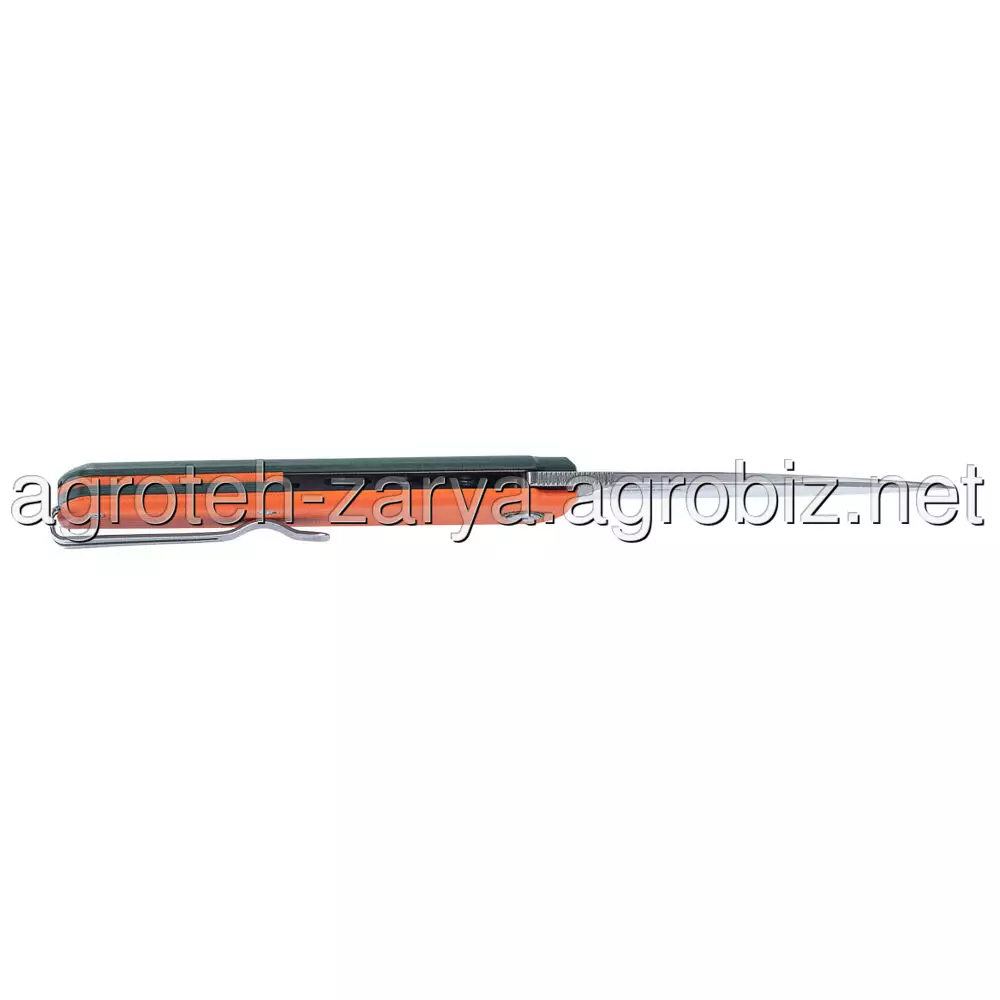 - Руківʼя з накладками G10. Склотекстолітові плашки не бояться вологи, різкої зміни температури та механічних пошкоджень, зокрема у разі удару. Шорстка текстура G10 сприяє надійному хвату для безпечного та комфортного застосування.