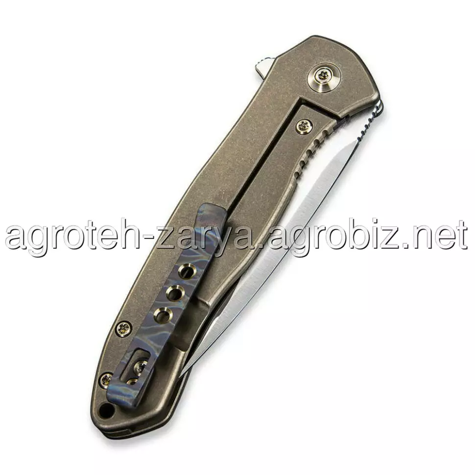 Руківʼя виготовлене з титану 6AL4V, який вважається найміцнішим титановим сплавом з визначними механічними властивостями. Метал не сколюється, не іржавіє, а головне — полегшує конструкцію. До того ж у цій моделі титан має кольорове покриття, що надає ножу унікального вигляду.