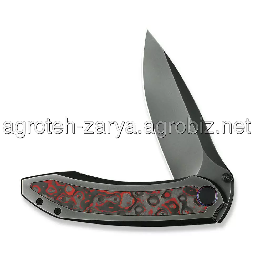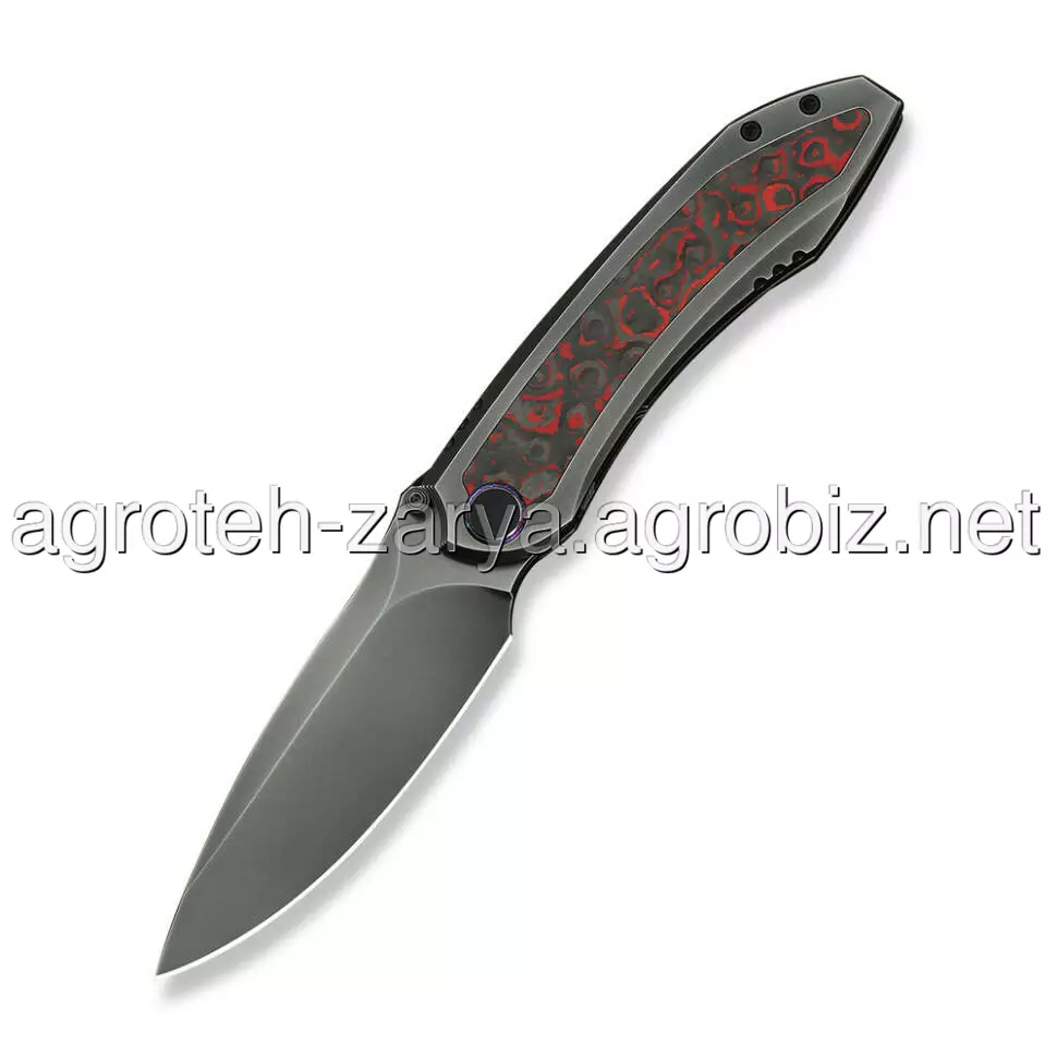 - Титанове руківʼя з інкрустацією з вуглеволокна. Аерокосмічний сплав 6Al4V характеризується ідеальним співвідношенням між міцністю та легкою вагою. Яскраві акцентні вставки з карбону роблять кожен ніж ексклюзивним та додають хвату жорсткості.
