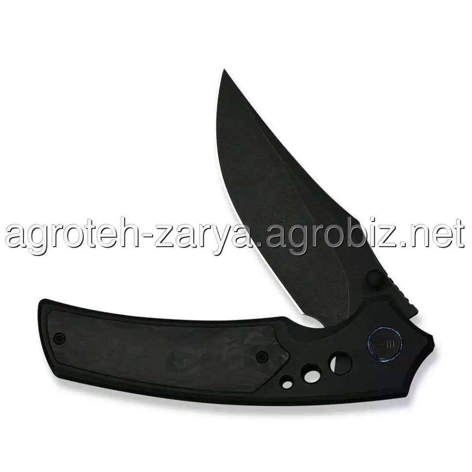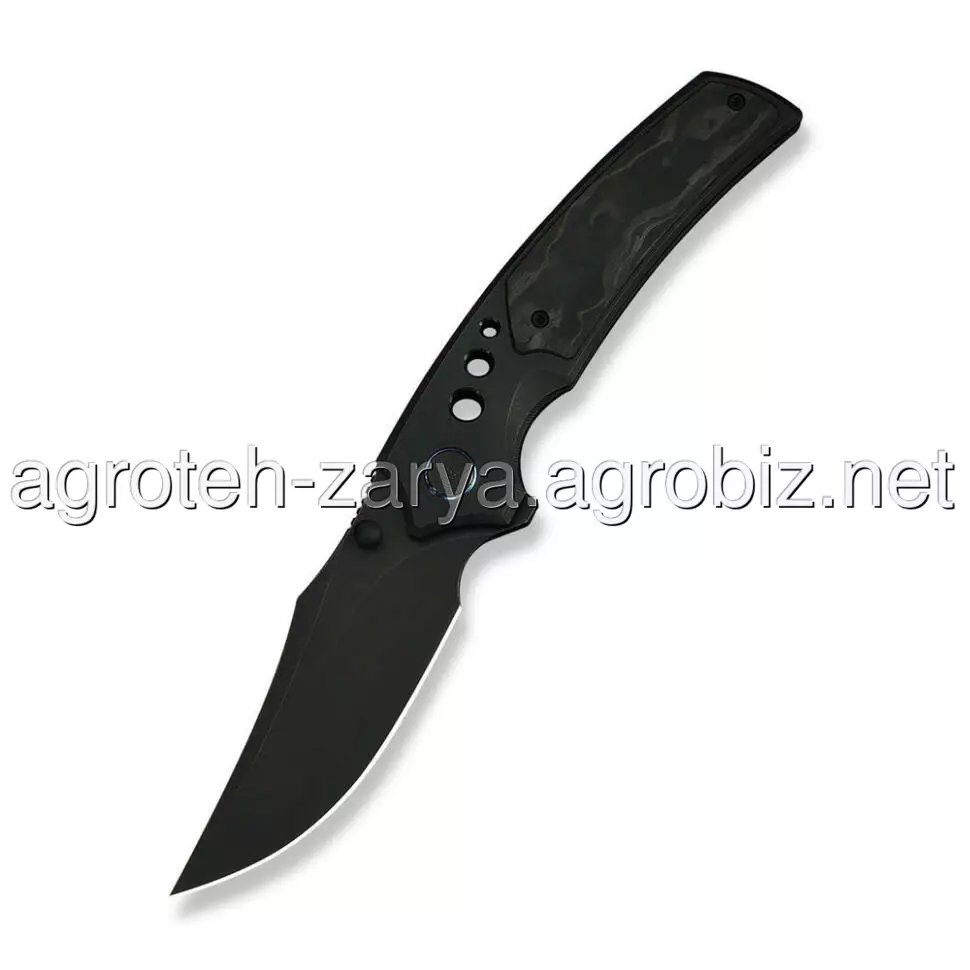 - Титанове руків’я з карбоновими вставками. Основа з титану 6AL4V доповнена вставками з Marble Carbon Fiber. Таке поєднання гарантує максимальну жорсткість конструкції, стійкість до температурних коливань та унікальний візуальний візерунок, який не повторюється.