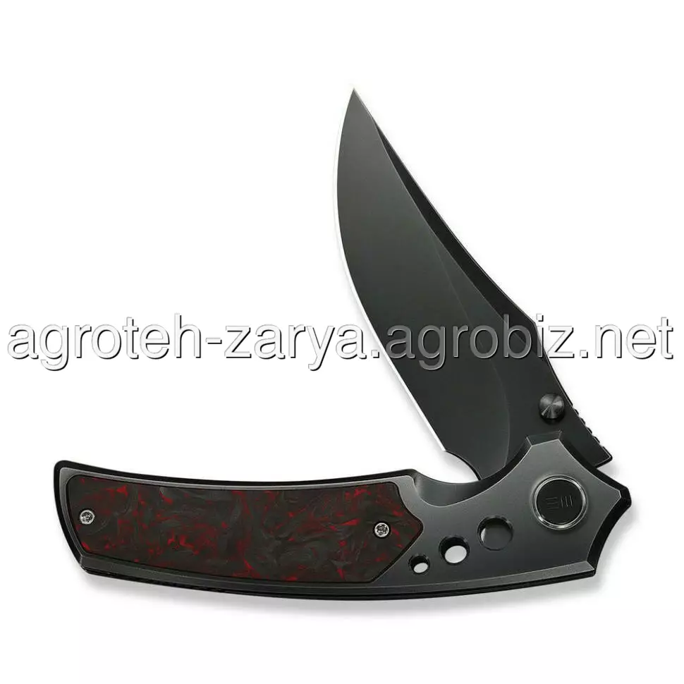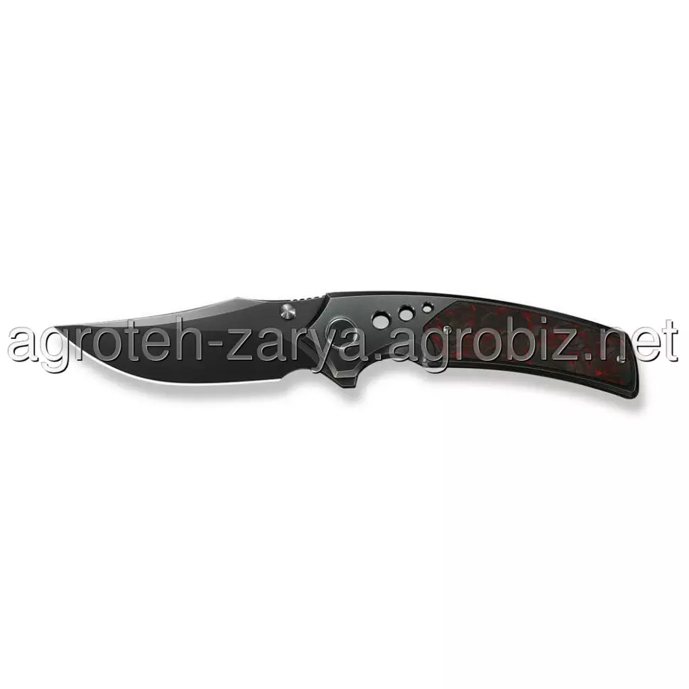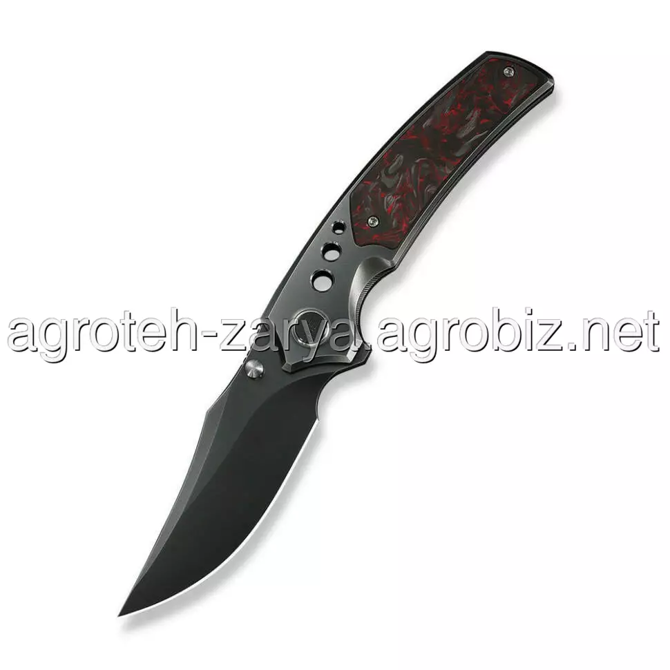 - Титанове руків’я з яскравими акцентами. Основа з полірованого титану сірого кольору (Polished Gray) доповнена вставками з Black & Red Carbon Fiber. Таке поєднання гарантує максимальну жорсткість конструкції, а червоні вкраплення в карбоні створюють агресивний та динамічний дизайн.
