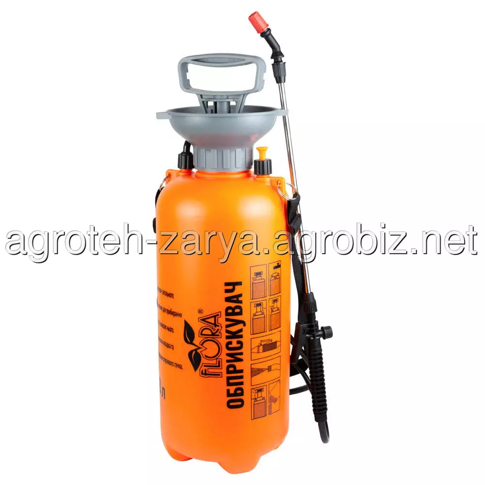 Обприскувач пневматичний 8л FLORA (5003234) - це поливальний інвентар, зазвичай застосовується в господарстві для зрошення водою або іншою рідиною грунт. Використовують цей пристрій коли рослині потрібні поживні речовини, а джерело даних речовин відсутня. Обприскувачі призначені для обробки рослин засобами захисту, гербіцидами і рідкими добривами. Маленькі зазвичай використовуються для квітів, а великі від 3л до 15л потрібні для проведення трудомістких робіт в саду. Садові обприскувачі допоможуть не тільки позбутися від шкідників і хвороб, але і забезпечать полив квітів, що вимагають акуратного поводження.