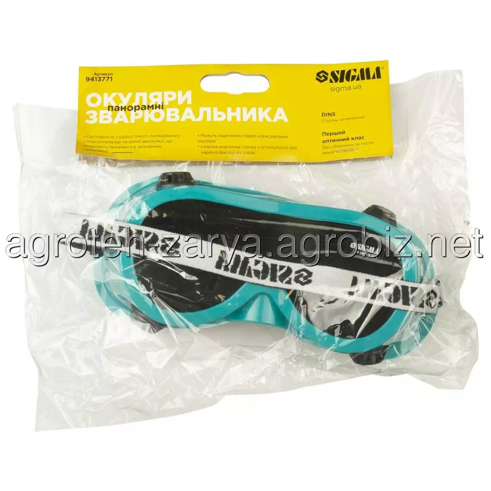 Окуляри зварювальника панорамні SIGMA (9413771) призначені для захисту очей при газовому зварюванні та різанні металів від сліпучої яскравості світла, ультрафіолетового випромінювання, а також від твердих частинок, що летять, і пилу.