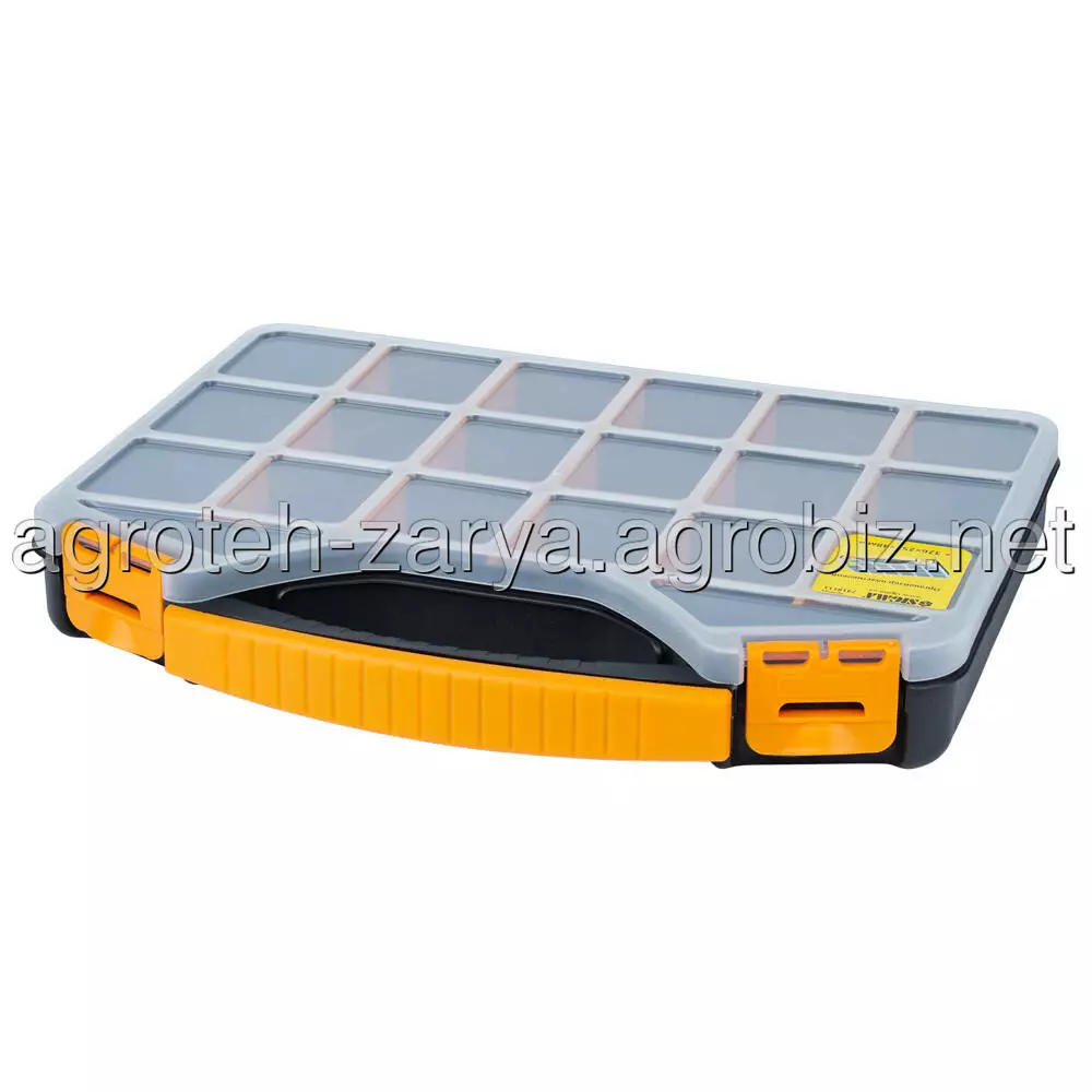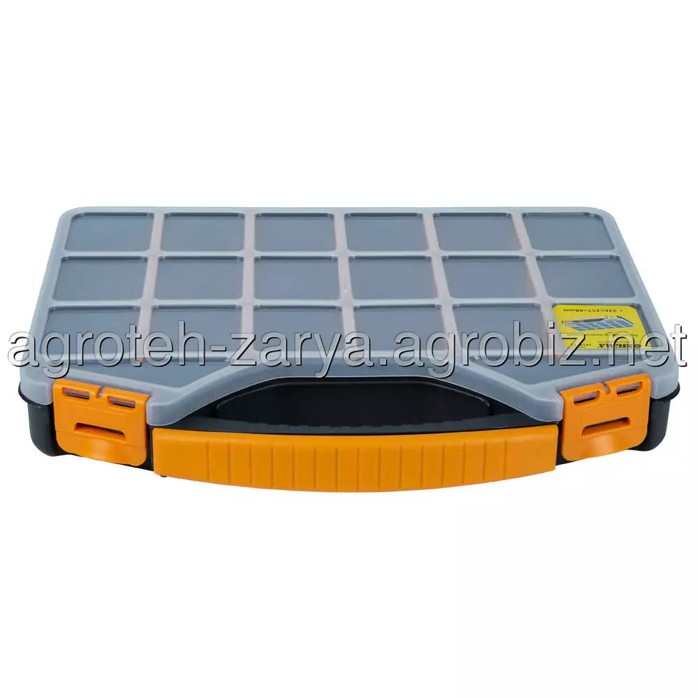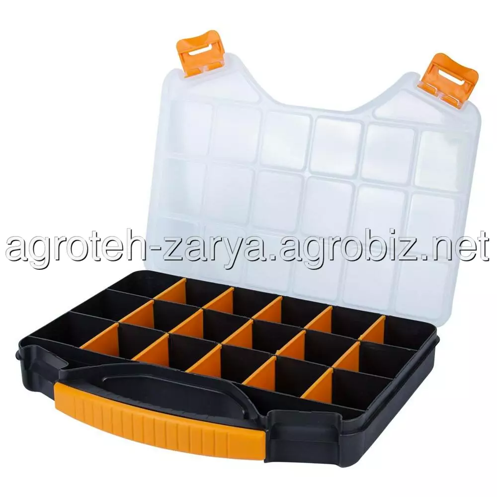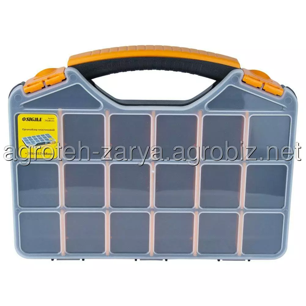 Органайзер пластиковий 326×257×48мм SIGMA (7418111) призначений для зберігання, транспортування, перенесення і зручного доступу до дрібного інструменту. Допомагають системно організувати зберігання дрібних деталей: кріплення, шайб, гайок та інших дрібниць. Простота в пошуку необхідних деталей забезпечується наявністю декількох секцій. Функціональний і знаходить застосування в багатьох сферах діяльності: перенесення індивідуальних інструментів, комплектація наборів інструментів і дрібних деталей для домашнього майстра, забезпечення працівників комунальних служб комплектом устаткування, укладання дрібних предметів на відпочинку, комплектації необхідного набору інструментів і аксесуарів для автомобіля і ін.
