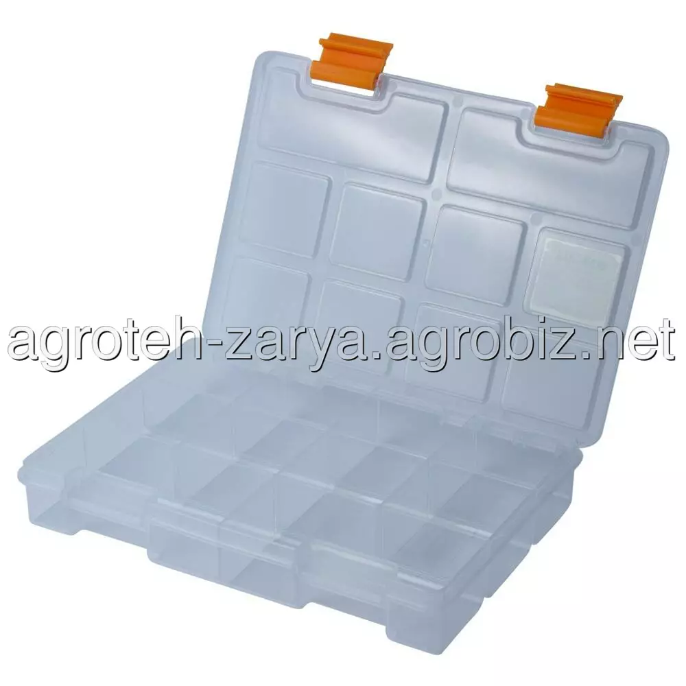 Органайзер пластиковий (прозорий) 195×140×32мм SIGMA (7418021) призначений для зберігання, транспортування, перенесення і зручного доступу до дрібного інструменту. Допомагають системно організувати зберігання дрібних деталей: кріплення, шайб, гайок та інших дрібниць. Простота в пошуку необхідних деталей забезпечується наявністю декількох секцій. Функціональний і знаходить застосування в багатьох сферах діяльності: перенесення індивідуальних інструментів, комплектація наборів інструментів і дрібних деталей для домашнього майстра, забезпечення працівників комунальних служб комплектом устаткування, укладання дрібних предметів на відпочинку, комплектації необхідного набору інструментів і аксесуарів для автомобіля і ін.