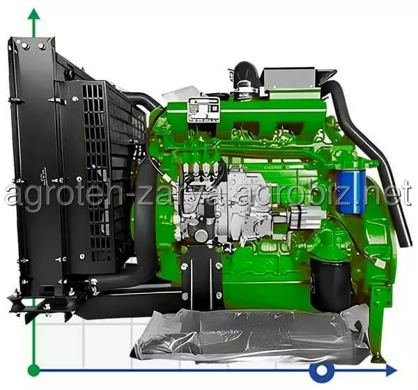 Включає: Радіатор, вентилятор, стартер, генератор змінного струму, повітряний фільтр, глушник, соленоїд зупинки, вал відбору потужності, паливний бак, панель лічильника.