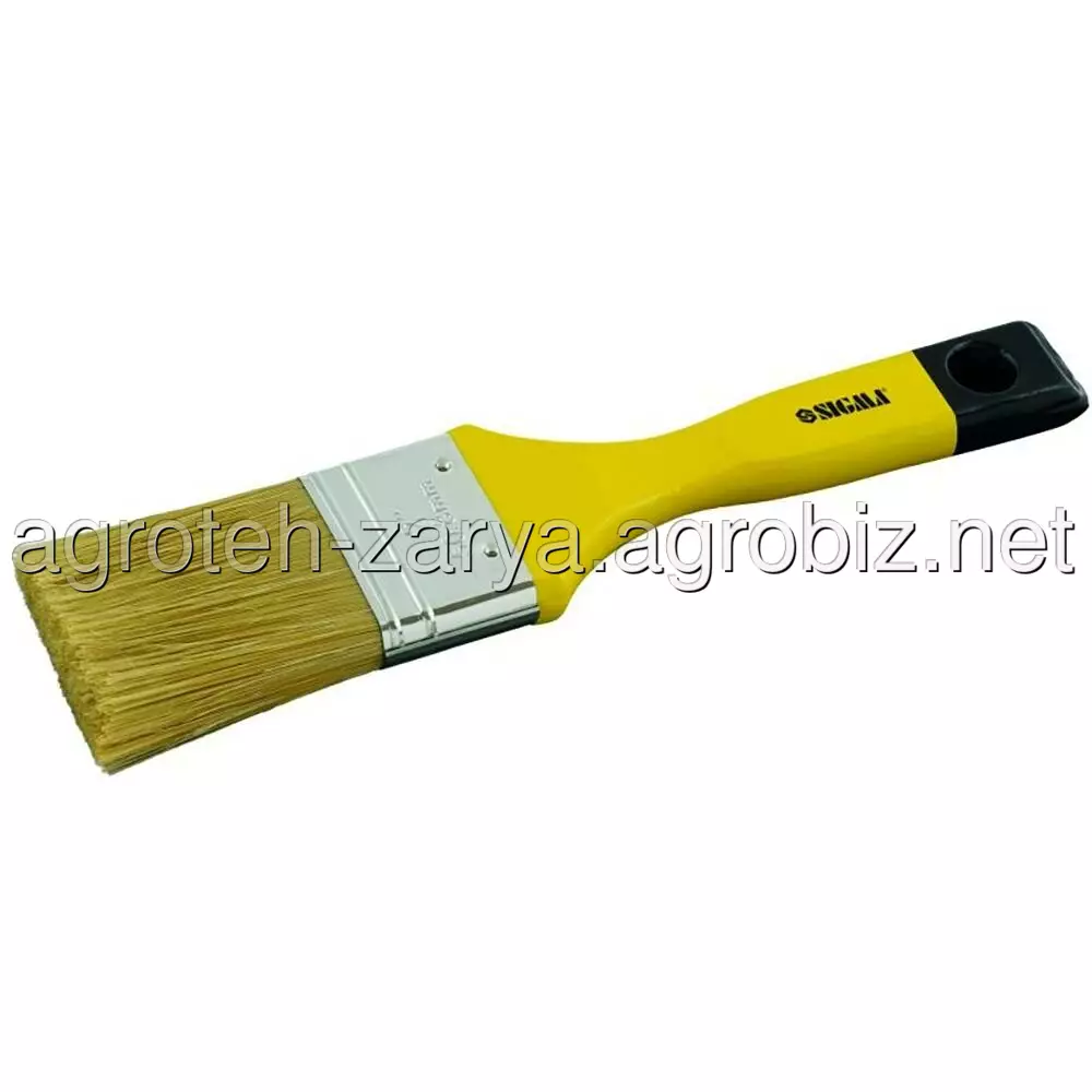 Пензель флейцевий мікс 4" SIGMA (8301971) - має змішану за спеціальною формулою штучну і високоякісну натуральну щетину. Призначений для роботи з водорозчинними ЛФМ, антисептиками. Дерев'яна ручка пофарбована жовтою і чорною фарбою, має отвір для підвішування. Пензель "Мікс" ідеально підходить для роботи всередині і зовні приміщення. Надійний затиск з нікельованої сталі повністю запобігає випаданню щетини, що гарантує безкомпромісну якість виконаної роботи.