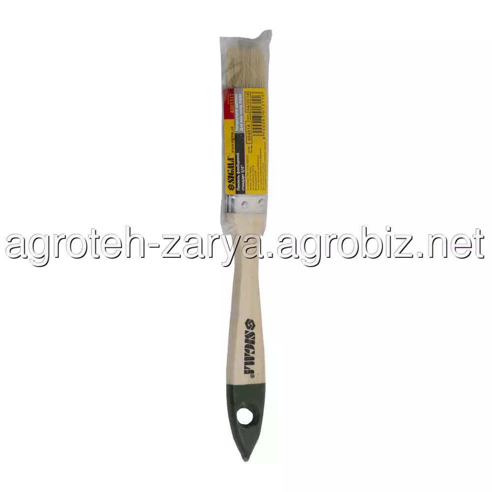 Пензель флейцевий стандарт 3/4" SIGMA (8301311) - натуральна щетина виварена і підстрижена, набирає в себе велику кількість матеріалу, що наноситься. Не схильна до негативного впливу агресивних речовин, що дозволяє використовувати її для роботи з усіма видами ЛФМ.