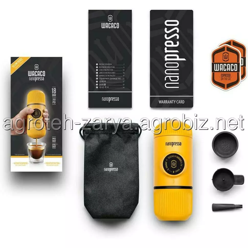 Опис портативної еспресо-кавоварки Wacaco Nanopresso жовтої: