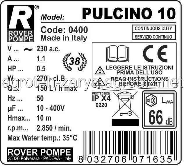 Звичайне обслуговування вимагає невеликої кількості і простих втручань, як якщо б це був звичайний побутовий прилад. Після використання злийте чисту воду, щоб промити внутрішні поверхні насоса. Електродвигун не вимагає обслуговування, деталі для змащення відсутні. Зовнішні частини необхідно очистити злегка вологою губкою, а потім відразу ж висушити ганчіркою.