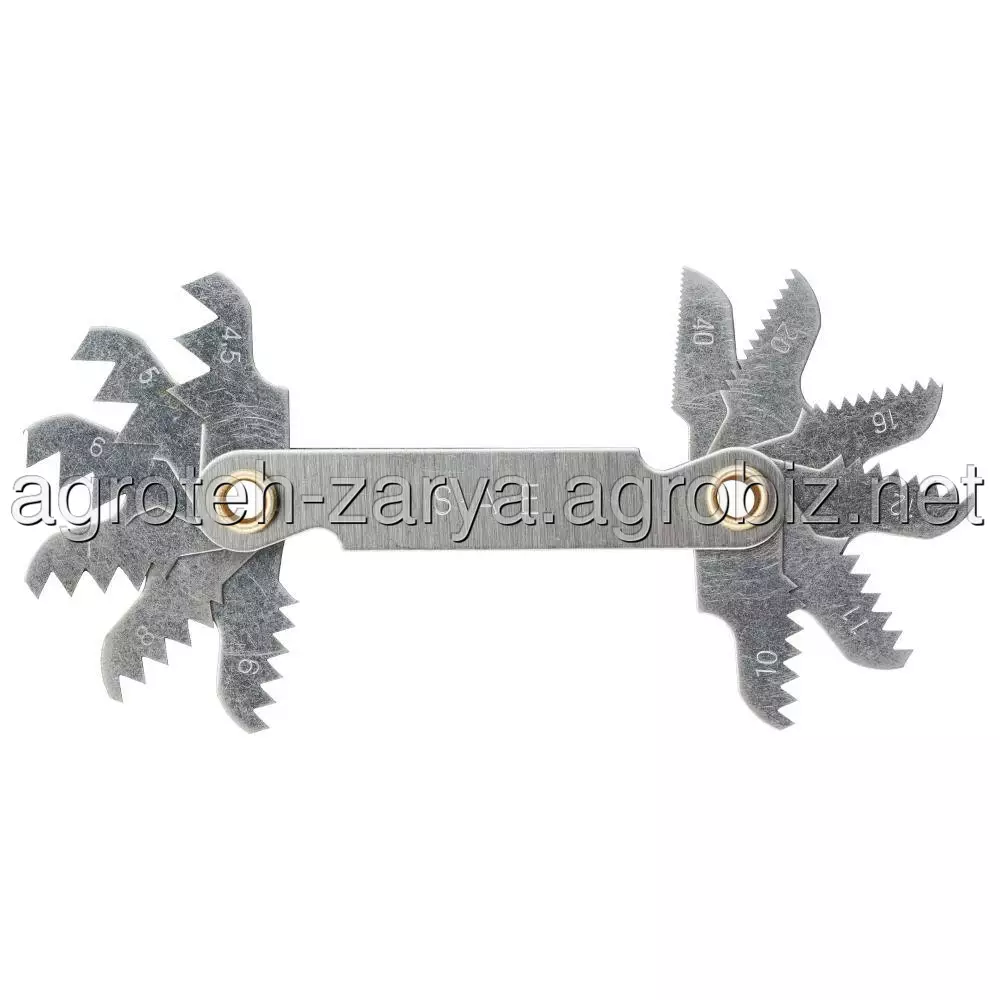 Різьбомір дюймовий 12 кроків SIGMA (1634421) призначений для визначення номінального розміру кроку зовнішньої і внутрішньої різьби. Для цього в резьбомери є марковані зубчасті пластини, що відкриваються за принципом розкладного ножа. Прикладаючи пластини по черзі до досліджуваної деталі до повного збігу ліній, визначають розмірність різьблення.