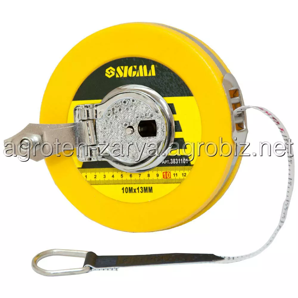 Рулетка скловолокно 10м×13мм SIGMA (3831101) - особливістю скловолоконних рулеток є можливість вимірювання великих відстаней за рахунок збільшеної міцності стрічки з низьким коефіцієнтом розтягування.
