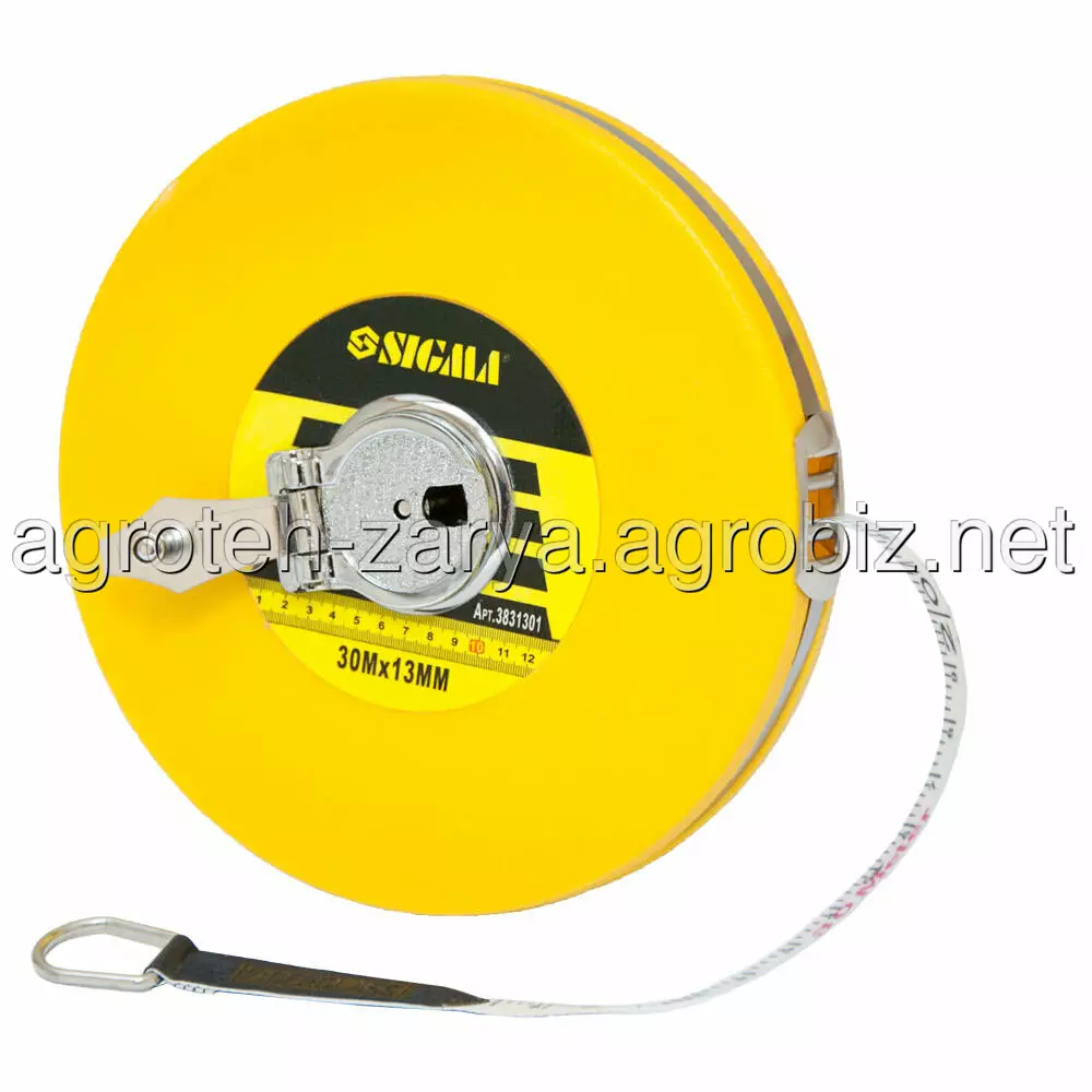 Рулетка скловолокно 30м×13мм SIGMA (3831301) - особливістю скловолоконних рулеток є можливість вимірювання великих відстаней за рахунок збільшеної міцності стрічки з низьким коефіцієнтом розтягування.