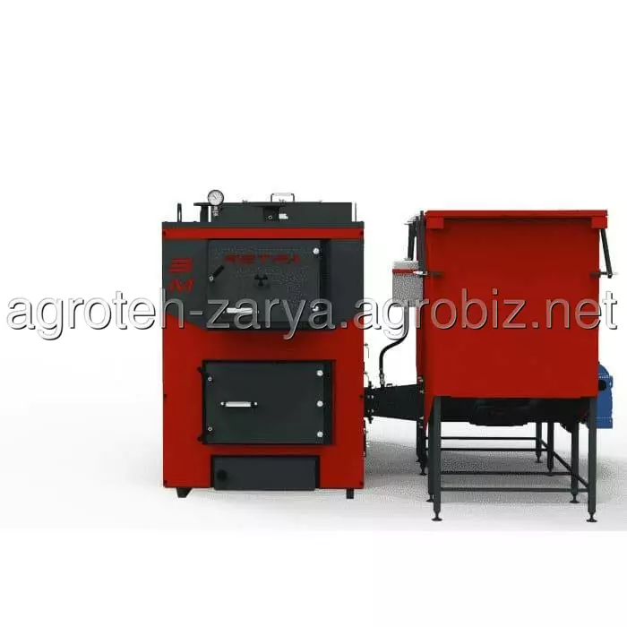 Автоматичний котел з бункером 2 м3 для подачі щепи, тирси, лушпиння, зернових, агровідходів і т.п. (об'єм бункера можна збільшити до 2,5 м3, 3 м3 і більше за допомогою надставок, які встановлюються на основний бункер). В режимі ручної подачі можна використовувати вугілля, антрацит, дрова, торфобрикет, лузгу брикетовану, солому, макулатуру. Можливо використання палива з високою вологістю (60% і більше, від 40% рекомендується футерування топки).Мають ряд переваг: ККД до 86-93%; міцний корпус камери згоряння із сталі 6 мм забезпечує ресурс роботи обладнання 15 років і більше; система розсікання повітряного потоку по всьому об'єму топки, що забезпечує повне спалення палива; система налаштування потоків повітря під будь-який вид твердого палива та горючих відходів; електронне керування примусовою подачею повітря з можливістю встановлення кліматичного терморегулятора та функції дистанційного керування; п'ять років гарантії на теплообмінник; можливість очистки колосникової решітки та ворушіння палива в процесі роботи (механічний зворушувач); разове завантаження палива складає 7-36 годин.