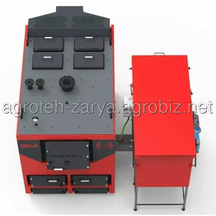 Автоматичний котел з бункером 2 м3 для подачі щепи, тирси, лушпиння, зернових, агровідходів і т.п. (об'єм бункера можна збільшити до 2,5 м3, 3 м3 і більше за допомогою надставок, які встановлюються на основний бункер). В режимі ручної подачі можна використовувати вугілля, антрацит, дрова, торфобрикет, лузгу брикетовану, солому, макулатуру. Можливо використання палива з високою вологістю (60% і більше, від 40% рекомендується футерування топки).Мають ряд переваг: ККД до 86-93%; міцний корпус камери згоряння із сталі 6 мм забезпечує ресурс роботи обладнання 15 років і більше; система розсікання повітряного потоку по всьому об'єму топки, що забезпечує повне спалення палива; система налаштування потоків повітря під будь-який вид твердого палива та горючих відходів; електронне керування примусовою подачею повітря з можливістю встановлення кліматичного терморегулятора та функції дистанційного керування; п'ять років гарантії на теплообмінник; можливість очистки колосникової решітки та ворушіння палива в процесі роботи (механічний зворушувач); разове завантаження палива складає 7-36 годин.