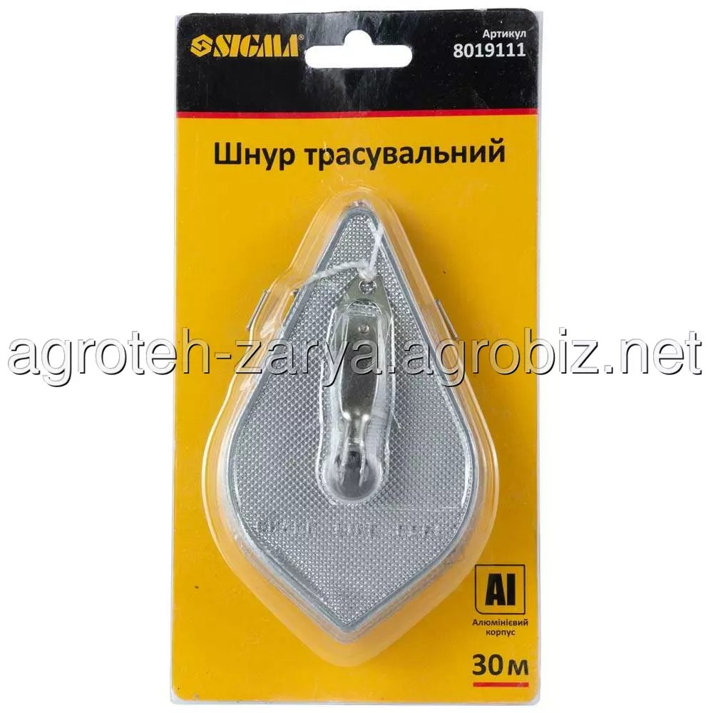 Шнур трасувальний 30м SIGMA (8019111) - це не складний, але незамінний в будівництві інструмент. Він являє собою контейнер з котушкою всередині нього, і виведеної збоку рукояткою від котушки. На котушці в корпусі намотаний шнурок, і один його край виведений назовні, через отвір.