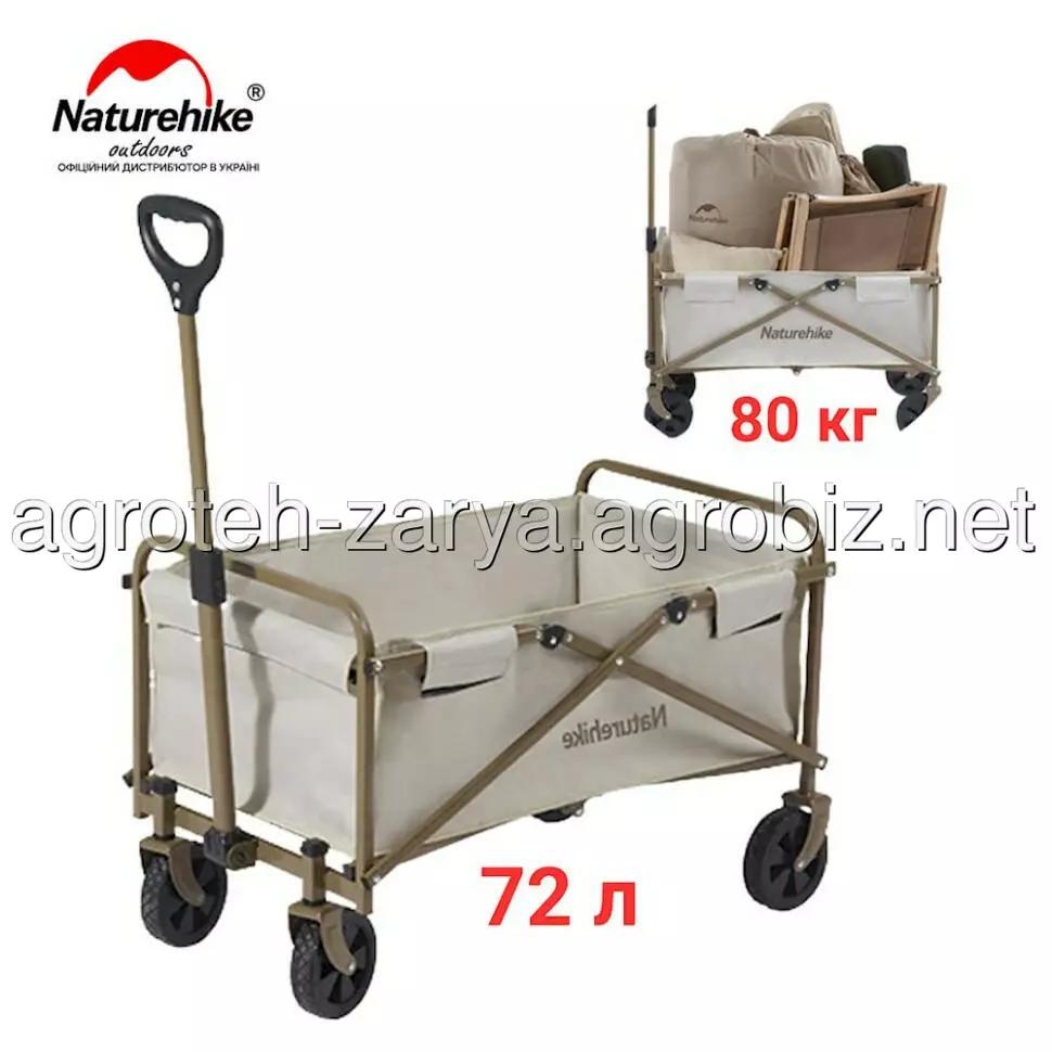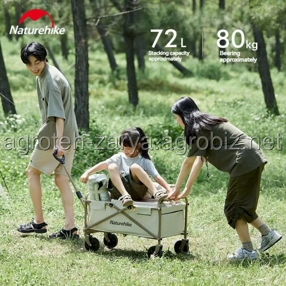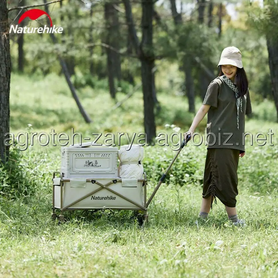 Мініатюрний візочок Naturehike TC06 має складану конструкцію місткістю 72 літри, дозволяючи зберігати та перевозити речі загальною вагою до 80 кг. Завдяки міцному каркасу зі сталі модель несприйнятлива до деформування при високих навантаженнях. Метал є нержавіючим, тому на поверхні не з'являється корозія навіть у разі постійного контакту з вологою.