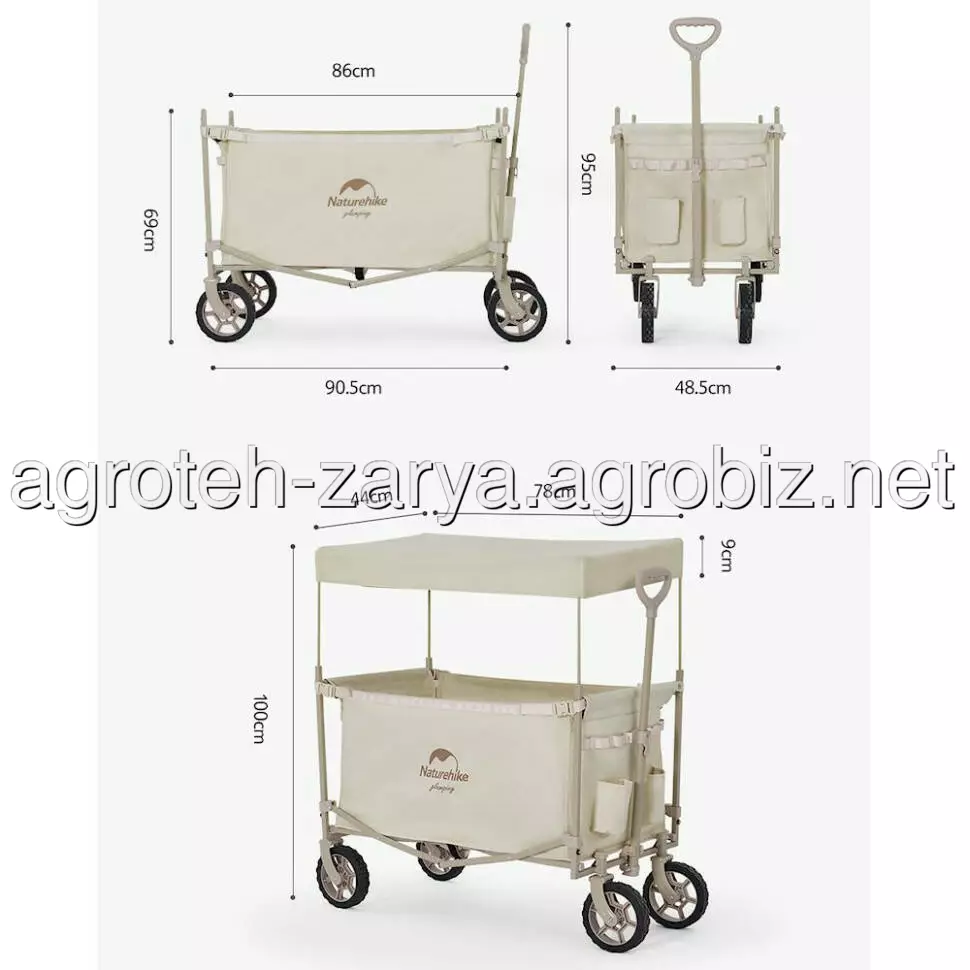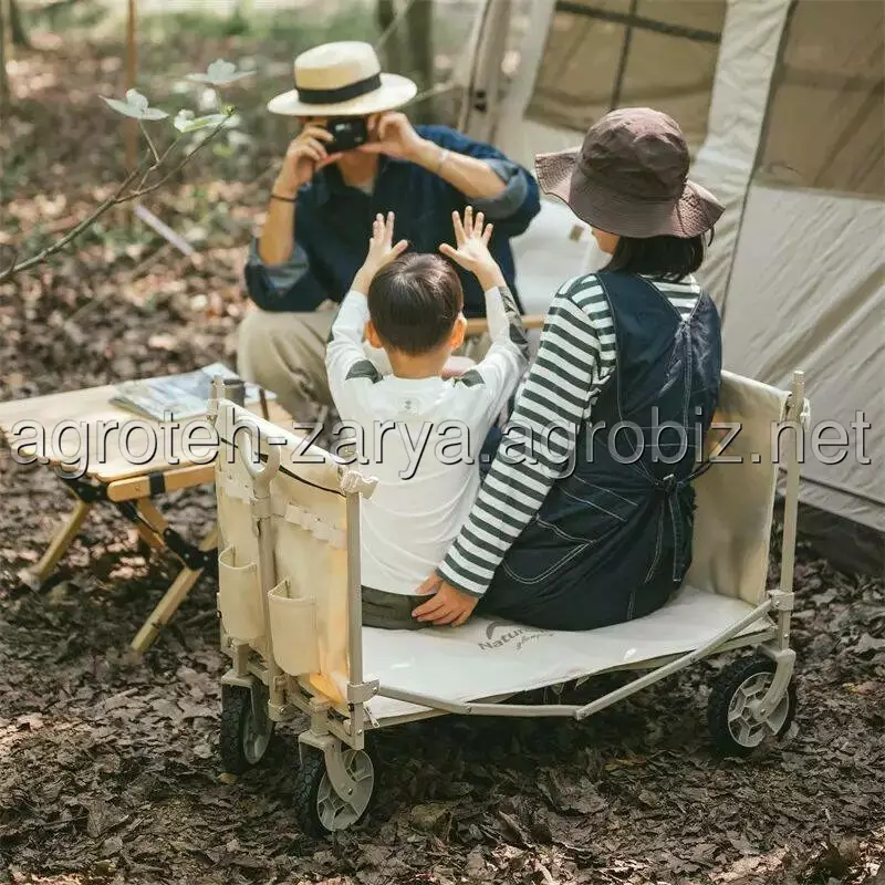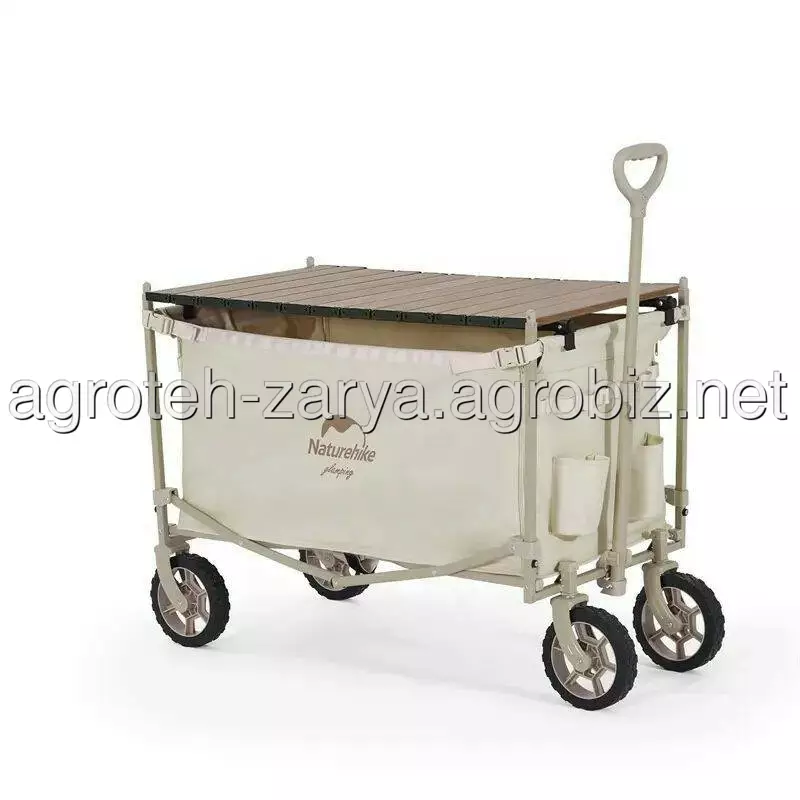 Портативний візочок Naturehike місткістю близько 146 літрів підходить для любителів кемпінгів і пікніків на природі. Завдяки продуманій конструкції модель можна використовувати не тільки як звичайний візок, але й трансформувати в полицю для зберігання речей або мініатюрний столик з поліпропіленовою стільницею (купується окремо).