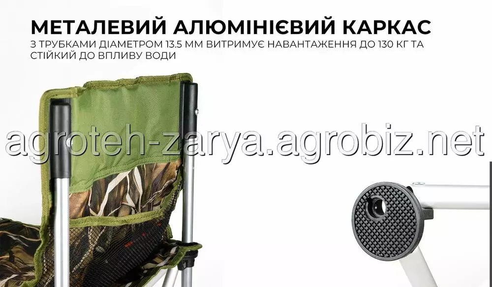 У спинці стільця використаний піноматеріал, що відрізняється м'якістю та дозволяє відпочиваючому максимально розслабитись під час сидіння. Ззаду спинки знаходиться широка кишеня, в яку можна покласти найнеобхідніші аксесуари, щоб вони були під рукою навіть під час відпочинку. Ніжки меблів доповнені неслизькими вставками, що підвищують стійкість конструкції при встановленні на хисткий ґрунт.