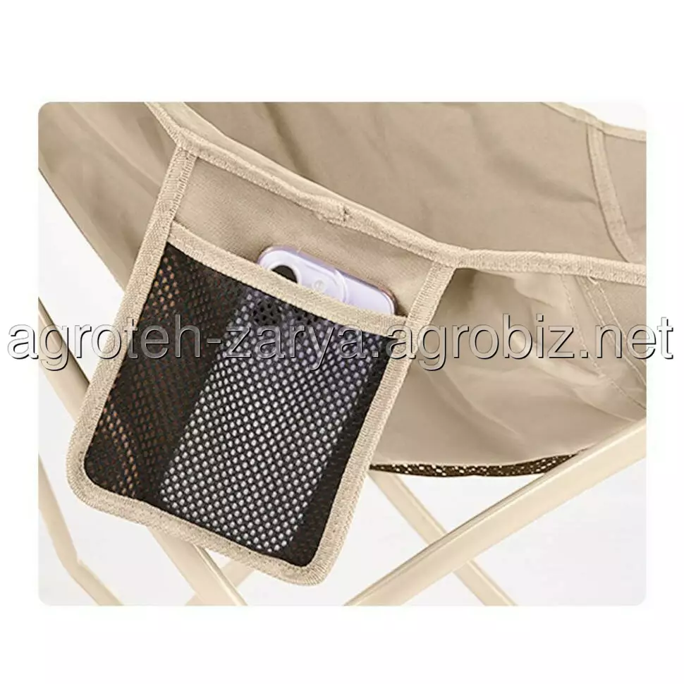 Розміри стільця у встановленому положенні сягають 67 х 52 х 71 см. Збоку є сітчаста кишеня для зберігання дрібних предметів, як смартфон, ліхтар, навушники тощо, які хочеться завжди тримати під рукою. Для кращої стійкості конструкції на ніжках передбачені нековзні накладки.