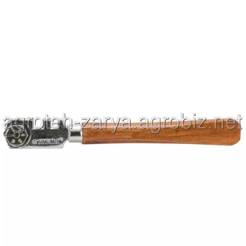 Склоріз 6-ти роликовий SIGMA (8222021) складається з 6 легко замінних ріжучих роликів, має 2 пазами (3 мм і 5 мм) для відламування скла. Зручна дерев'яна лакована ручка. Призначений для ручного різання скла товщиною 3-8мм.