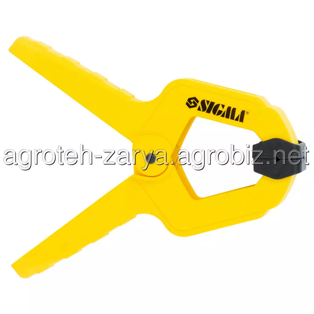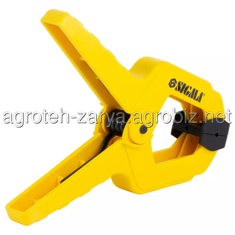 Струбцина пружинна 63мм SIGMA (4244841) застосовується для фіксації та утримання заготовок при виконанні складальних, столярних та слюсарних робіт. Пружинна струбцина працює за принципом прищіпки і має в своїй конструкції пружину, яка і створює нерегульоване затискне зусилля. На губках є накладки, які запобігають появі слідів на м'яких матеріалах. Відрізняється легкістю і зручністю, всі маніпуляції при роботі з нею виконують однією рукою. Забезпечує стабільне затискне зусилля. Оптимальна для делікатної фіксації деталей, що склеюються.
