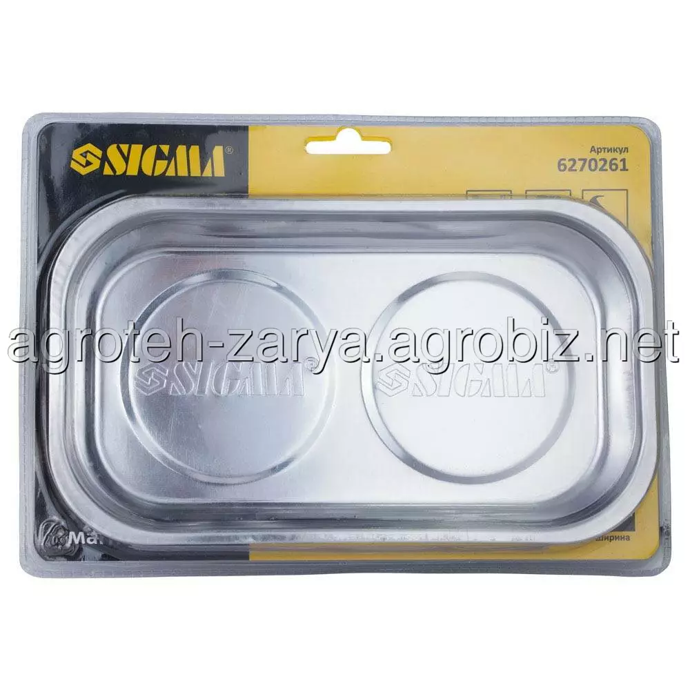 Тарілка магнітна SIGMA (6270261) призначена для зберігання дрібних металевих деталей, металовиробів (цвяхів, гвинтів, гайок, шайб, болтів, шурупів, саморізів і т.п.), а також різних насадок (біт, торцевих головок і т.п.) . Може кріпитися до будь-яких металевих поверхонь. Навіть перебуваючи в похилому положенні магнітні предмети в тарілці будуть зафіксовані. Для захисту від пошкоджень поверхонь (наприклад, фарби автомобіля), до яких кріпиться магніт, нижня частина покрита шаром гуми.