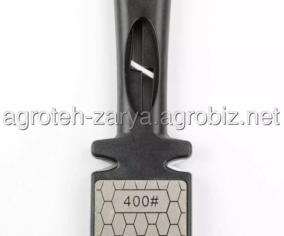 - З одного боку знаходиться алмазна пластина зернистістю 400 грит, призначена для грубої заточування леза з формуванням необхідного кута;