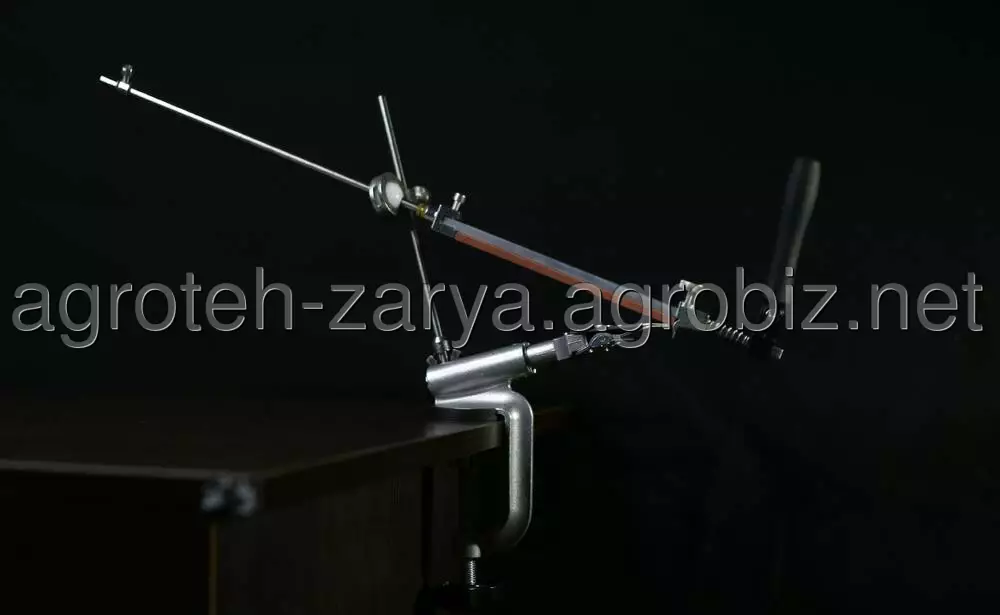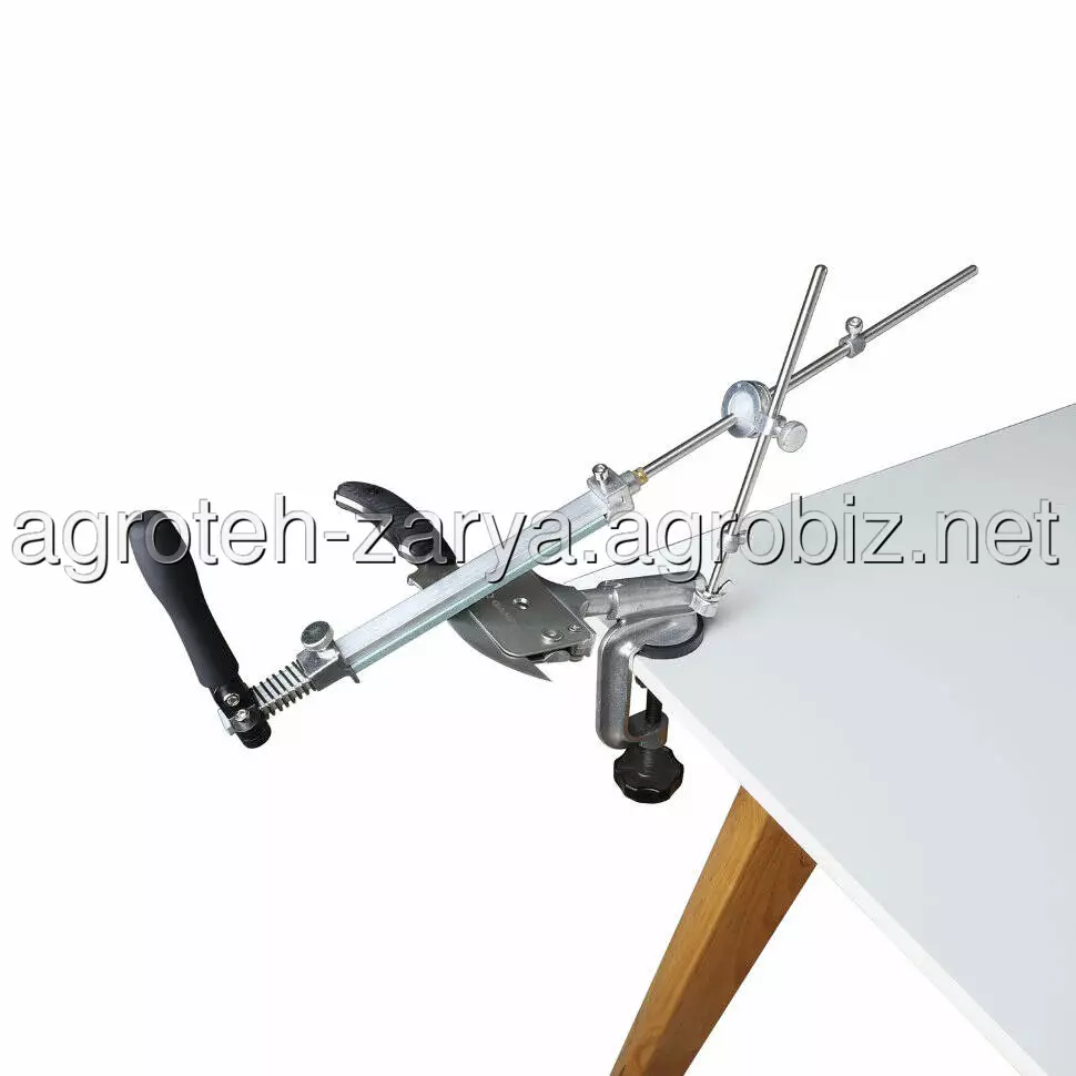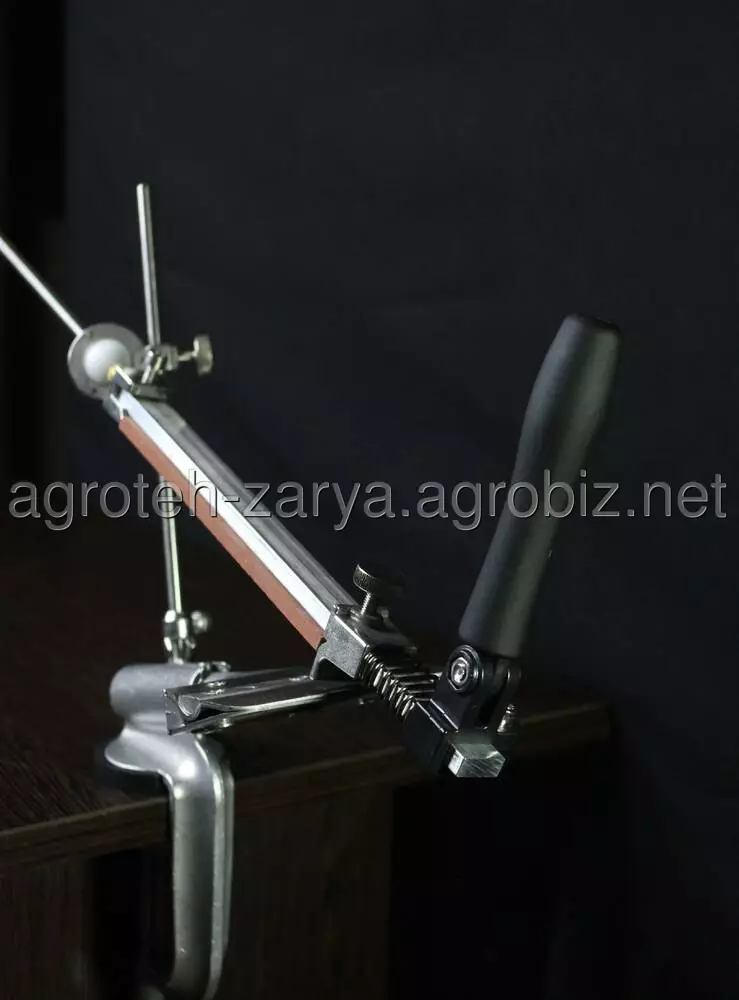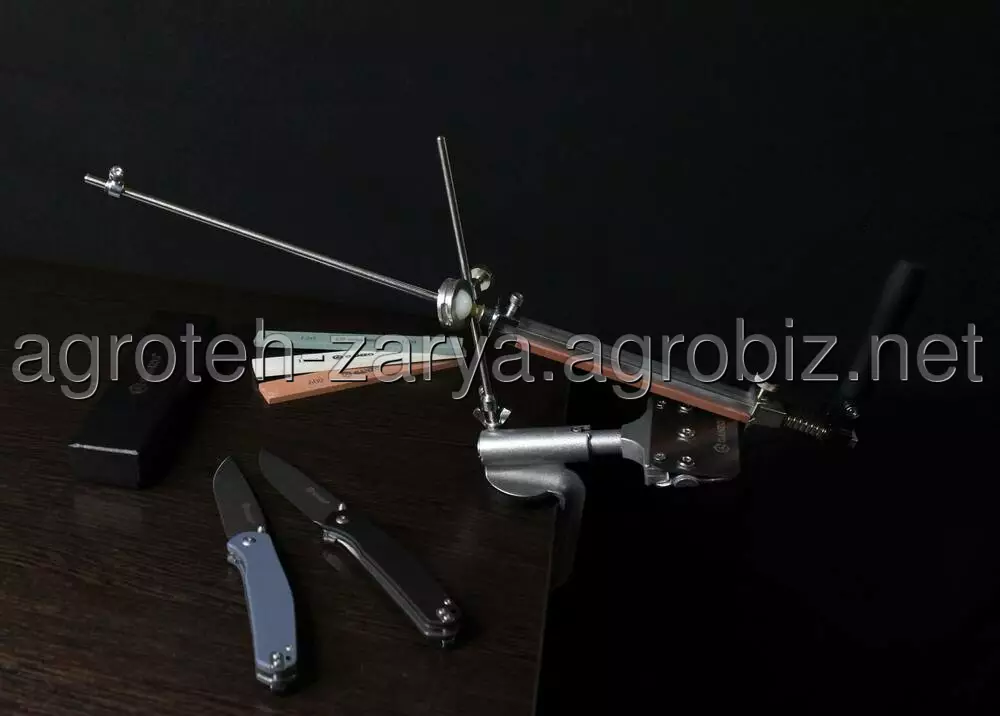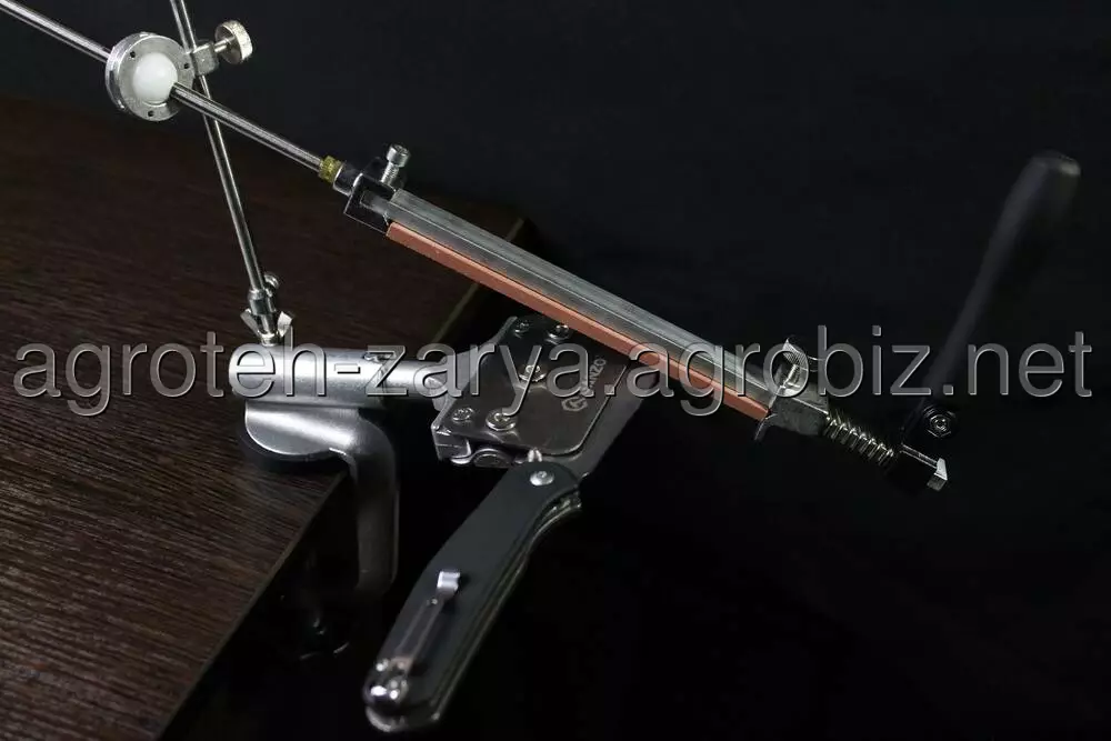 Надійна фіксація всіх елементів верстата і заточується інструменту, а також зручна ручка ергономічної форми, що значно спрощують весь процес заточування і підвищують якість заточування. Лезо рекомендується заточувати плавним рухом від себе, не роблячи сильного тиску на клинок. В зібраному вигляді верстат займає мало місця. Його запросто можна транспортувати і зберігати в зручній сумці, яка входить в комплектацію.