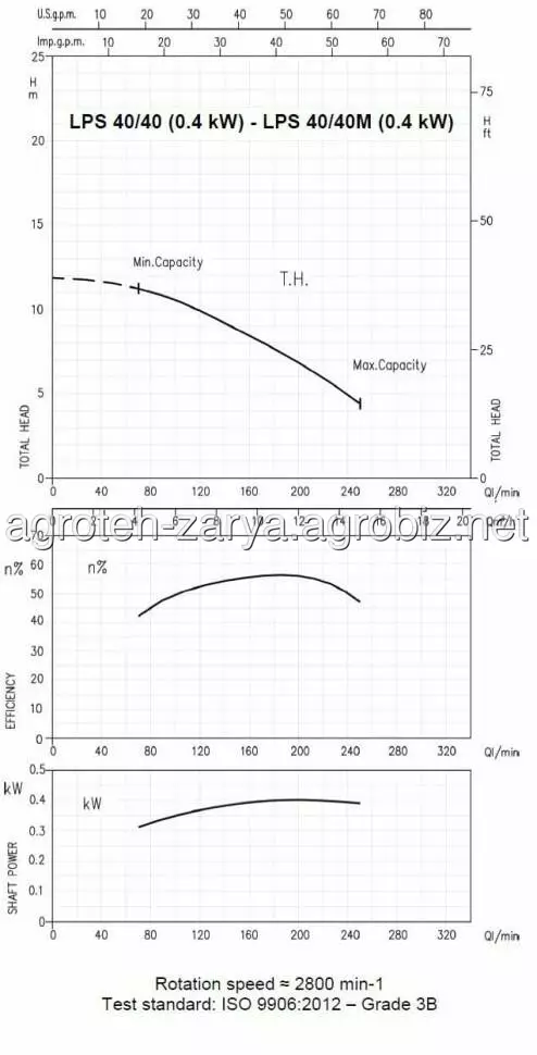 Технічні дані: продуктивність до 25 м3/год; висота подачі до 21 м; температура рідини, що перекачується: -10°C ÷ 100°C; максимальний тиск: 0,4 МПа.