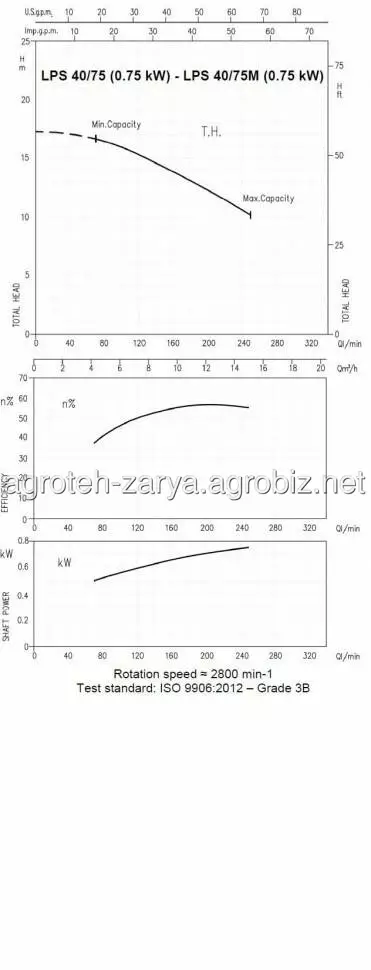 Технічні дані: продуктивність до 25 м3/год; висота подачі до 21 м; температура рідини, що перекачується: -10°C ÷ 100°C; максимальний тиск: 0,4 МПа.