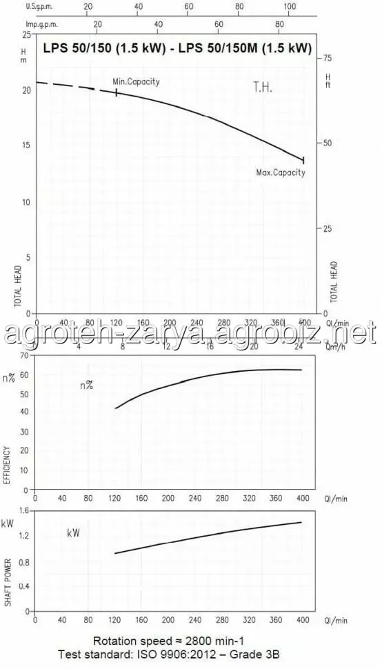 Технічні дані: продуктивність до 25 м3/год; висота подачі до 21 м; температура рідини, що перекачується: -10°C ÷ 100°C; максимальний тиск: 0,4 МПа.