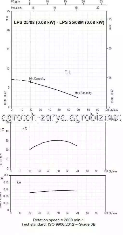 Технічні дані: продуктивність до 25 м3/год; висота подачі до 21 м; температура рідини, що перекачується: -10°C ÷ 100°C; максимальний тиск: 0,4 МПа.