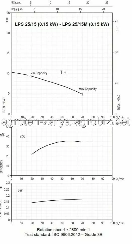 Технічні дані: продуктивність до 25 м3/год; висота подачі до 21 м; температура рідини, що перекачується: -10°C ÷ 100°C; максимальний тиск: 0,4 МПа.