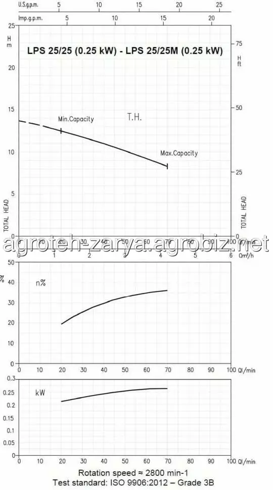 Технічні дані: продуктивність до 25 м3/год; висота подачі до 21 м; температура рідини, що перекачується: -10°C ÷ 100°C; максимальний тиск: 0,4 МПа.