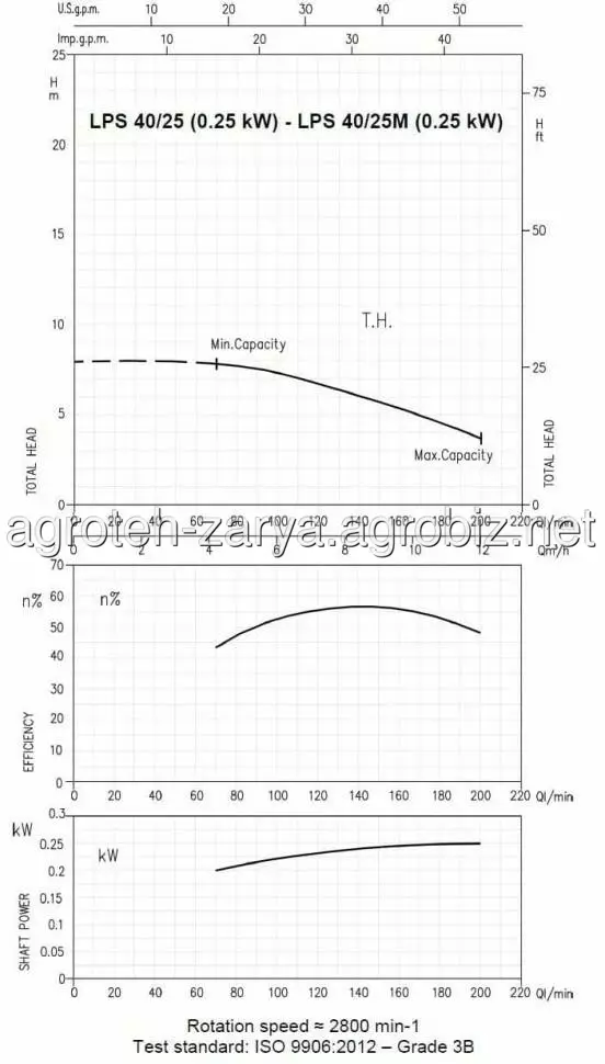 Технічні дані: продуктивність до 25 м3/год; висота подачі до 21 м; температура рідини, що перекачується: -10°C ÷ 100°C; максимальний тиск: 0,4 МПа.