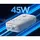 Повербанк оснащений портом USB-C з вихідною потужністю до 45 Вт, забезпечуючи швидке заряджання сучасних пристроїв, включно з MacBook, iPad Pro та іншими енергоємними гаджетами. Водночас батарея заряджається через той самий порт без необхідності використання окремого зарядного пристрою.