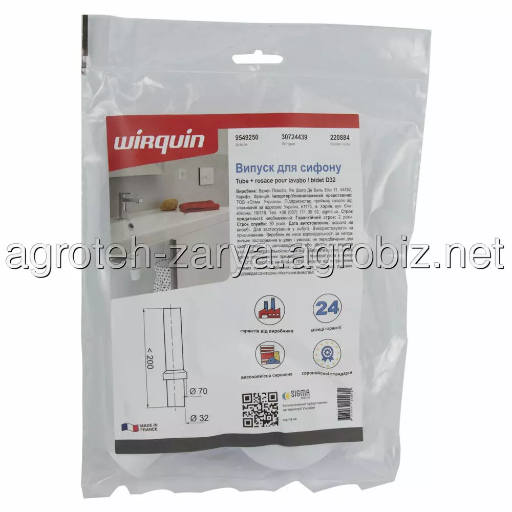 Випуск для сифона Ø32мм WIRQUIN (9549250)